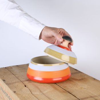 Grosse Dose bunt gestreift matt und glänzend, innen natur.